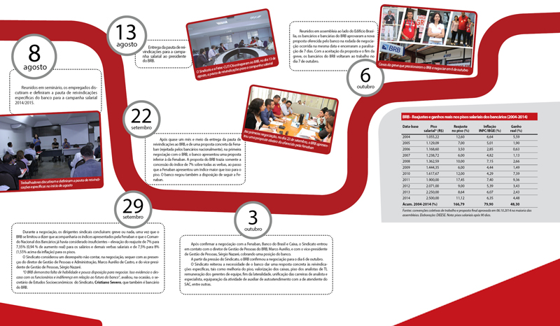 Até se chegar a uma proposta que contemplasse as reivindicações dos bancários, foram realizadas três rodadas de negociações específicas com o BRB. Confira, abaixo, o cronograma da campanha salarial: