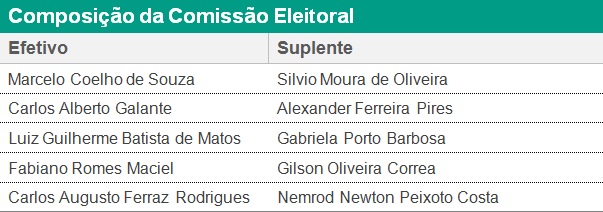 Para coordenar e executar a realização das eleições foi instituída a Comissão Eleitoral, composta por cinco membros e respectivos suplentes, indicada pela Diretoria Executiva e homologada pelo Conselho Deliberativo.