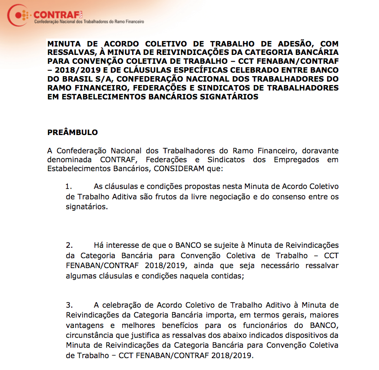 A pauta específica dos funcionários do BB foi construída ao longo de vários meses, com reuniões nos locais de trabalho, assembleias e encontros regionais, sendo consolidada no 29º Congresso dos Funcionários do BB, realizado nos dias 7 e 8 de junho.