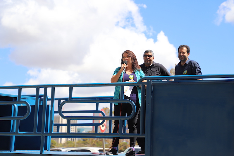 Durante o ato, os dirigentes sindicais reforçaram a importância do Banco do Brasil para a sociedade brasileira. “A estratégia usada pela gestão do banco à mando do governo federal é de esvair o BB, mais uma tentativa de destruir o modelo de responsabilidade com o povo e entregar este patrimônio bicentenário nas mãos do capital estrangeiro. Para nós, brasileiros e brasileiras, está claro que não existe um plano de governo”, destaca o presidente do Sindicato e bancário do BB, Kleytton Morais.