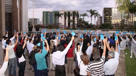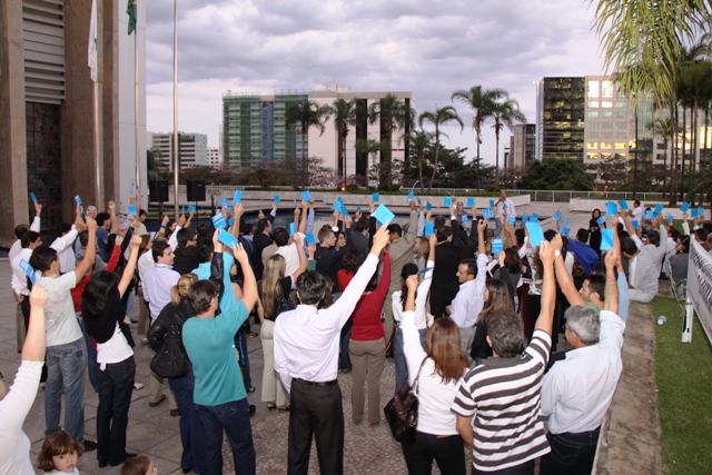 Profissionais da Caixa durante assembleia no Matriz I: greve durou quase 50 dias