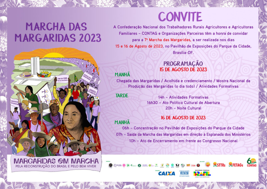 A 7ª edição da Marcha apresenta Mostra Nacional da Produção das Margaridas, atividades formativas, ato político-cultural e noite cultural. Essa parte da agenda será realizada no Pavilhão de Exposições do Parque da Cidade, na terça (15). A partir das 6h da quarta (16), começa a concentração para a caminhada até o Congresso Nacional.