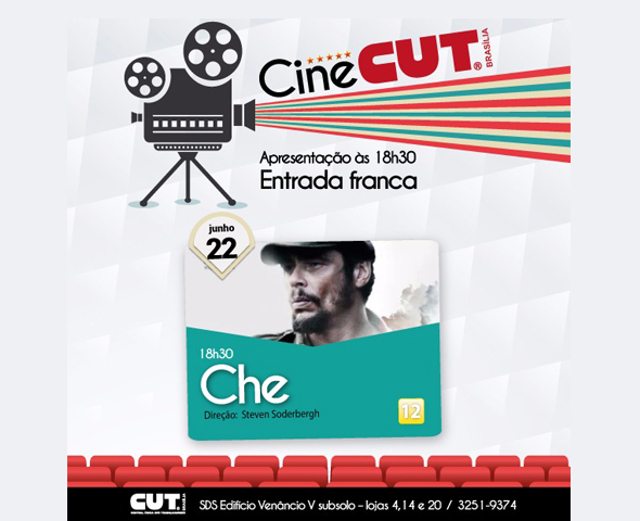 O Cine CUT Brasília retoma sua programação nesta quarta feira (22) exibindo o filme Che, a partir das 18h30. Esta é a mais completa versão cinematográfica da história de Che Guevara, dirigido por Steven Soderbergh. Ernesto Guevara de la Serna, o Che, foi guerrilheiro, político, jornalista, escritor e médico argentino.