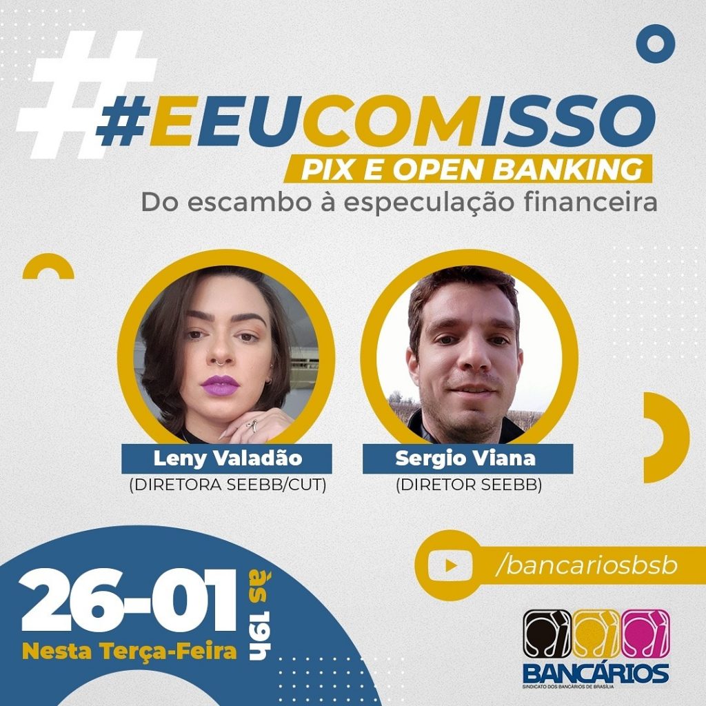 O Sindicato dos Bancários no Distrito Federal convida toda a categoria bancária para prestigiar o lançamento do programa semanal #EeuComIsso, nesta terça (26), às 19hs, no canal do Sindicato no Youtube.