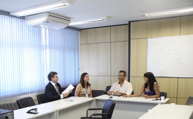 A proposta de ajuste ao PCS foi apresentada aos diretores do Sindicato André Nepomuceno, secretário-geral da entidade, Cida Sousa e Cristiano Severo pela gerente da Gerência de Promoção da Saúde e Qualidade de Vida (Gepaq), Isabel Cristina, que coordenou o GT.