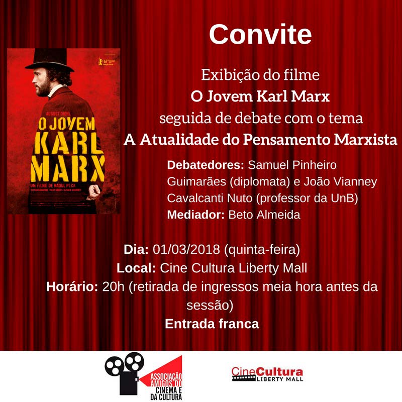 O Cine Cultura Liberty Mall exibe, nesta quinta-feira (1º), às 20h, o filme “O Jovem Karl Marx”, do haitiano Raoul Peck. Após apresentação do longa metragem, haverá debate a partir do tema “A Atualidade do Pensamento Marxista”. A entrada é franca.