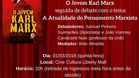 O Cine Cultura Liberty Mall exibe, nesta quinta-feira (1º), às 20h, o filme “O Jovem Karl Marx”, do haitiano Raoul Peck. Após apresentação do longa metragem, haverá debate a partir do tema “A Atualidade do Pensamento Marxista”. A entrada é franca.