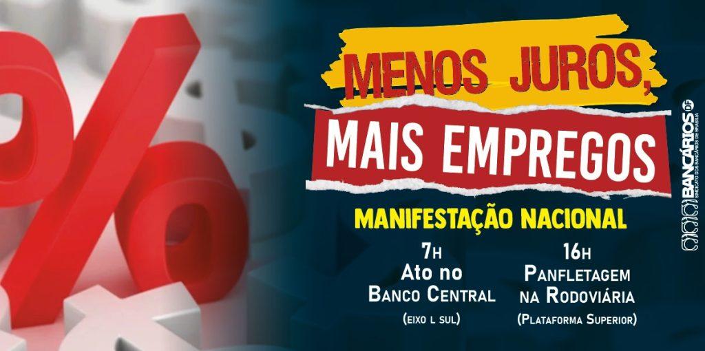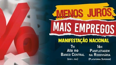 Nesta terça-feira (30), a partir das 10h, o Sindicato se junta à CUT e às demais centrais em mais um protesto nacional contra a alta taxa de juros praticada pelo Banco Central. Em Brasília, o ato será frente à sede do Banco Central (BC). A data foi escolhida por ser o primeiro dia de reunião do Comitê de Política Monetária (Copom), que define a taxa de juros do país (Selic) a cada 45 dias.