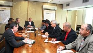 Os diretores do Sindicato José Wilson e Rodrigo Britto participam da reunião com o ministro do Planejamento, Paulo Bernardo, dia 6, na ofensiva para pressionar o BB sobre a Cassi