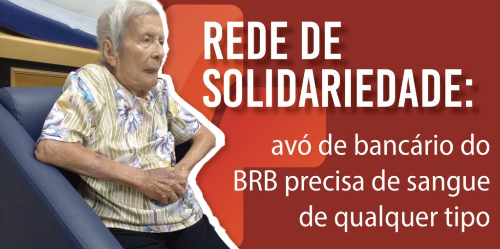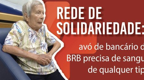 Maria dos Prazeres de Souza, 98 anos, avó do bancário do BRB e ex-diretor da Federação dos Bancários do Centro-Norte (Fetec-CUT) Rodrigo Camilo, precisa urgentemente de doadores de qualquer tipo de sangue.