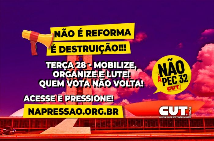 Os servidores públicos municipais, estaduais e federais farão atos nesta terça-feira (28), em Brasília, e nos aeroportos para protestar contra a Proposta de Emenda à Constituição (PEC) nº 32, da reforma Administrativa.