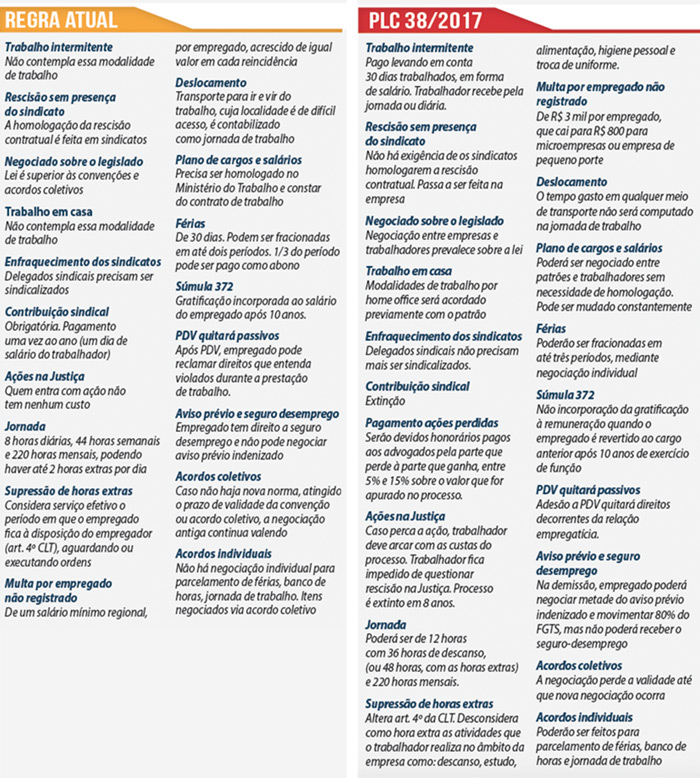 Confira no quadro comparativo a seguir o que os trabalhadores perdem com a reforma: