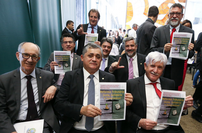 Partidos do campo da oposição apresentaram, nesta terça-feira (8), na Câmara dos Deputados, uma proposta chamada de “reforma tributária justa, solidária e sustentável”. Colocada como contraponto à medida que tramita atualmente na Casa, a Proposta de Emenda Constitucional (PEC) 5/2019, o texto é assinado pelas siglas PT, PDT, PSB, Psol, PCdoB e Rede e foi redigido pelo corpo técnico das bancadas do grupo.