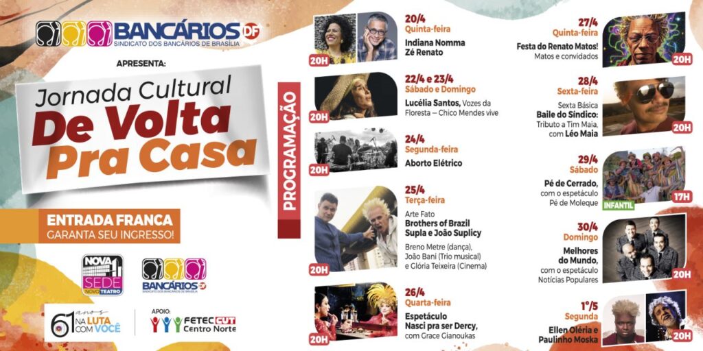 Durante esses dias, você poderá conferir uma programação diversificada e gratuita, com atividades voltadas para valorizar a cultura local e proporcionar momentos de lazer e descontração para as bancárias e os bancários, seus familiares e toda a comunidade.