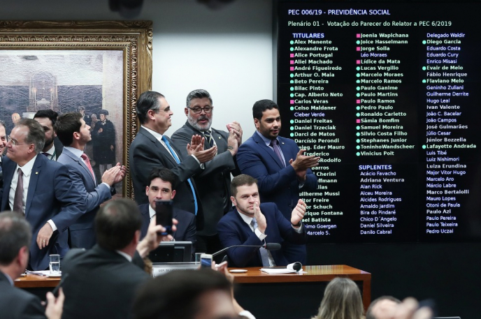 O governo de extrema direita de Jair Bolsonaro(PSL/RJ) conseguiu nesta quinta-feira(4) que os membros da Comissão que analisam a reforma da Previdência, aprovassem o relatório de Samuel Moreira (PSDB-SP), da Proposta de Emenda a Constituição (PEC 006/2019). Por 36 a votos a 13, os deputados concordaram com medidas, por exemplo, que acabam com a aposentadoria por tempo de contribuição e institui a idade mínima para de 62 anos (mulheres), com 15 anos de contribuição e 65 (homens), com 20 anos de contribuição. Para se aposentar com benefício integral será necessário contribuir por 40 anos.