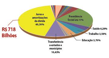 Juros altos comprometem fortemente o orçamento público. Do total de R$ 1,783 trilhão do Orçamento executado no exercício de 2013, cerca de R$ 718 bilhões - ou 40,3% desse total - foram comprometidos com o pagamento de juros, amortizações e refinanciamentos (rolagem) da dívida pública federal, segundo o Dieese.