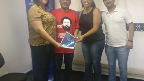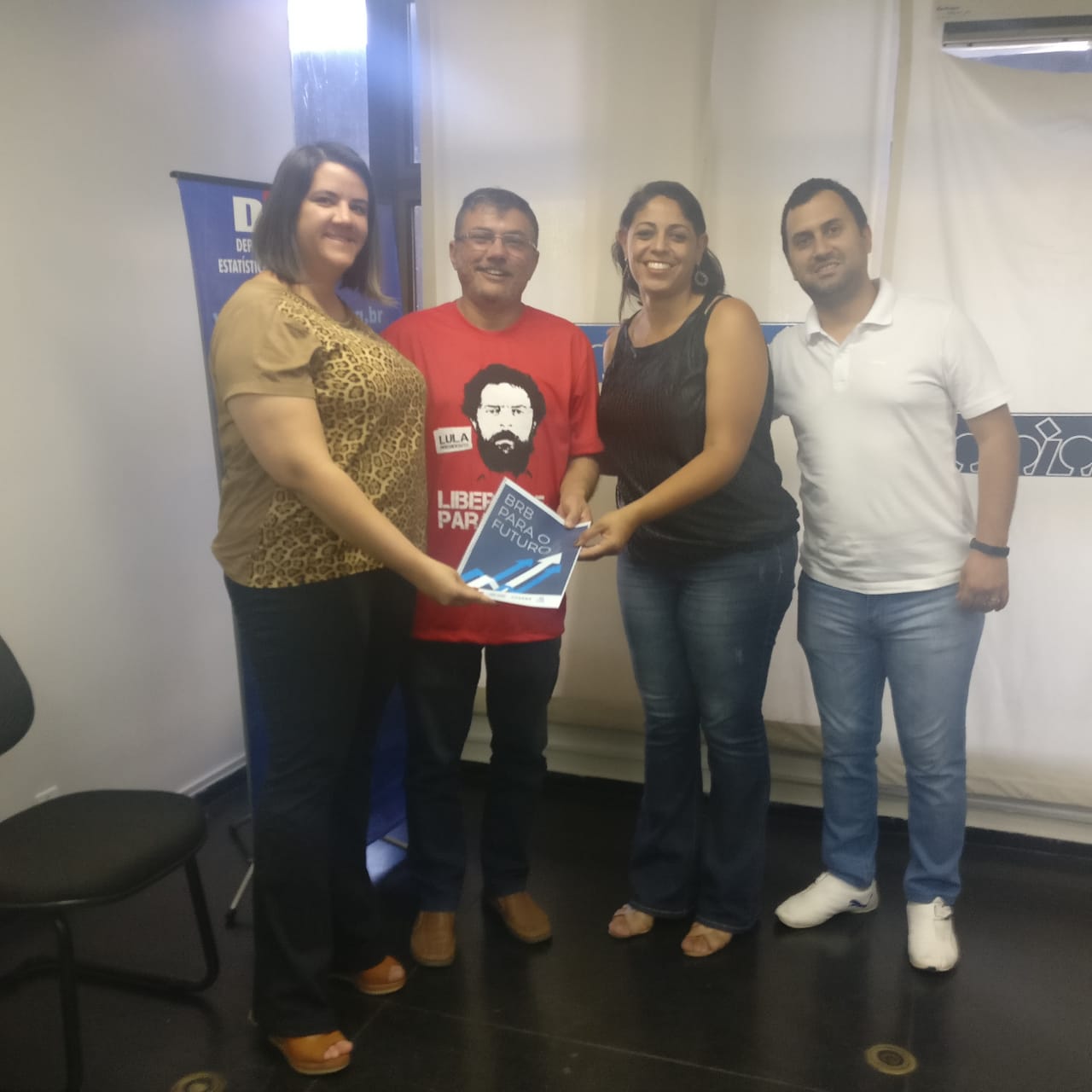 “Nossa campanha não é pautada em promessas. Mas, o nosso partido defende a estatização de todo o sistema financeiro”, disse o candidato do PCO (Partido da Causa Operária) ao governo do DF Renan Rosa, ao receber o documento “BRB para o futuro”, nesta quarta-feira (26), das entidades representativas do conjunto de empregados do banco – Sindicato, AFA, AEBRB e a AABR.