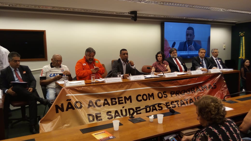 Em audiência pública na Comissão de Trabalho, de Administração e Serviço Público (CTASP) da Câmara dos Deputados, nesta terça-feira (28), entidades representativas dos trabalhadores bancários, petroleiros, urbanitários e dos Correios, criticaram as novas regras dos planos de saúde das estatais, implementadas através da Resolução 23 da Comissão Interministerial de Governança Corporativa e de Administração de Participações Societárias da União (CGPAR). Durante a sessão, foi feito um tuitaço com a hashtag #RevogaCGPAR.
