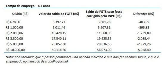 Cada cálculo é individual, dependerá do período de recolhimento, se houve saque ao longo do tempo, para depois aplicar o índice correspondente. É bom esclarecer que as diferenças em reais nas contas individuais não são muito altas. Veja os exemplos: