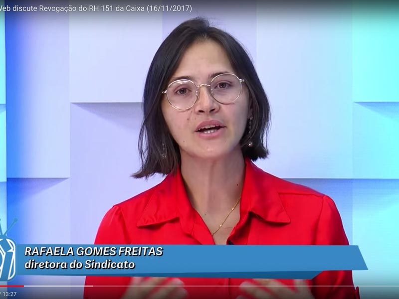 O TV Bancários Web desta quinta (16), trás como tema a Revogação do RH 151 da Caixa. Como convidada o programa recebe Rafaela Gomes Freita, diretora do Sindicato.