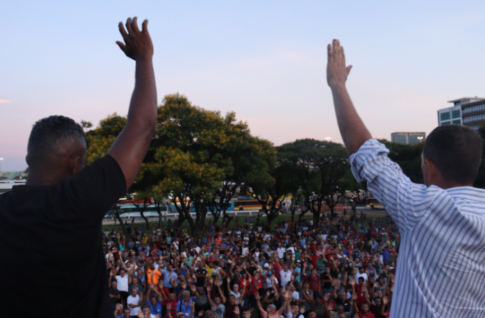 A tarde desta segunda-feira (6), foi de grande expectativa para as trabalhadoras e trabalhadores rodoviários do DF. Desde às 14h, a categoria foi se aglomerando no estacionamento do Conic, próximo ao Sindicato. Depois, foram aguardar os resultados da reunião entre os dirigentes sindicais e o Tribunal Regional do Trabalho (TRT), no gramado em frente à rodoviária do Plano Piloto, onde aconteceu a assembleia.