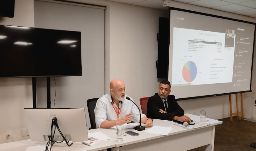 Durante a assembleia, a Secretaria de Finanças expôs aos associados as demonstrações contábeis, conforme prevê o estatuto do Sindicato, com números explicativos e gráficos, separados por bancos, secretarias e áreas de atuação.
