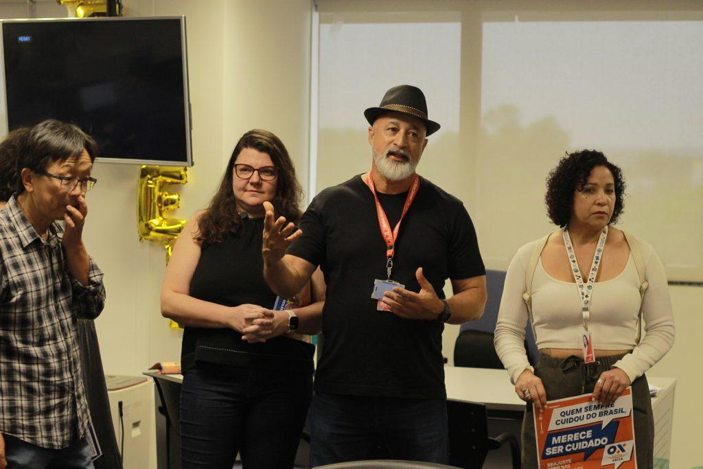Sindicatos de bancários de todo o país realizaram, nesta quarta-feira (17), um Dia Nacional de Luta em Defesa do Saúde Caixa e dos empregados da Caixa Econômica Federal. A mobilização em Brasília, que contou com a participação de dirigentes da Fenae, ocorreu na Gesad (gerência responsável pela gestão do Saúde Caixa) e se dá em meio às negociações para renovação do Acordo Coletivo de Trabalho (ACT) do plano de saúde, buscando pressionar a direção do banco a apresentar uma proposta que garanta reajuste zero nas mensalidades e maior participação da empresa no custeio das despesas.