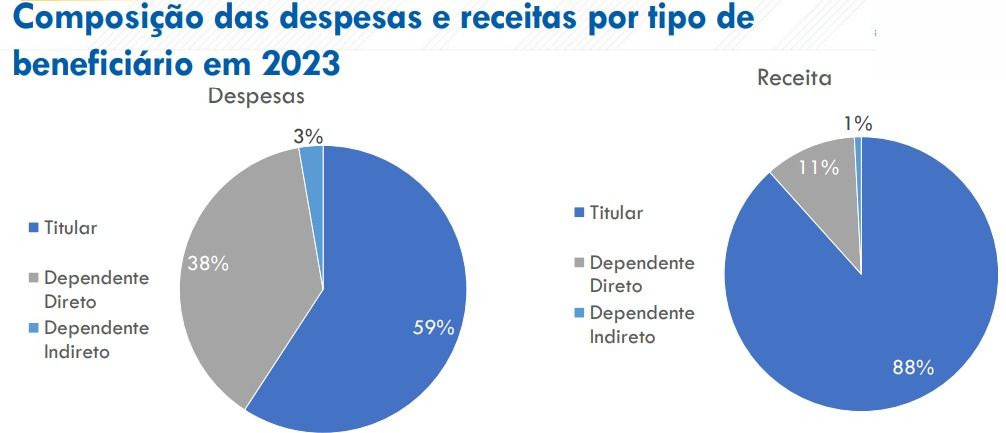 Atualmente o Saúde Caixa conta com 286 mil usuários, entre titulares (128 mil) e dependentes (158 mil), sendo que os dependentes respondem por 12% das receitas e por 41% das despesas.