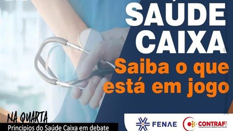 O bate-papo sobre o Saúde Caixa será transmitido ao vivo pela TV Contraf (Youtube) e palas páginas no Facebook da Contraf-CUT e da Fenae.