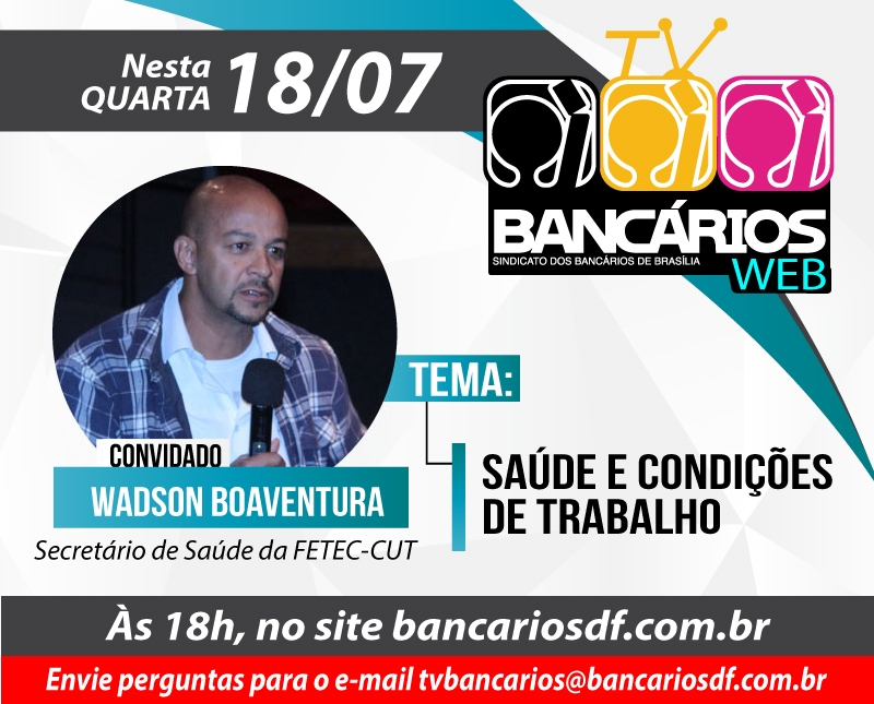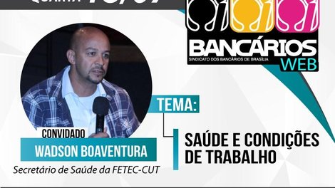 Tema da terceira rodada de negociação com a federação dos bancos, a luta por mais saúde e melhores condições de trabalho para os bancários será discutida no TV Bancários Web desta quarta-feira (18). O convidado desta edição é Wadson Boaventura, secretário de Saúde da Federação dos Bancários do Centro Norte. O programa será transmitido ao vivo, a partir das 18h, pelas redes sociais do Sindicato.