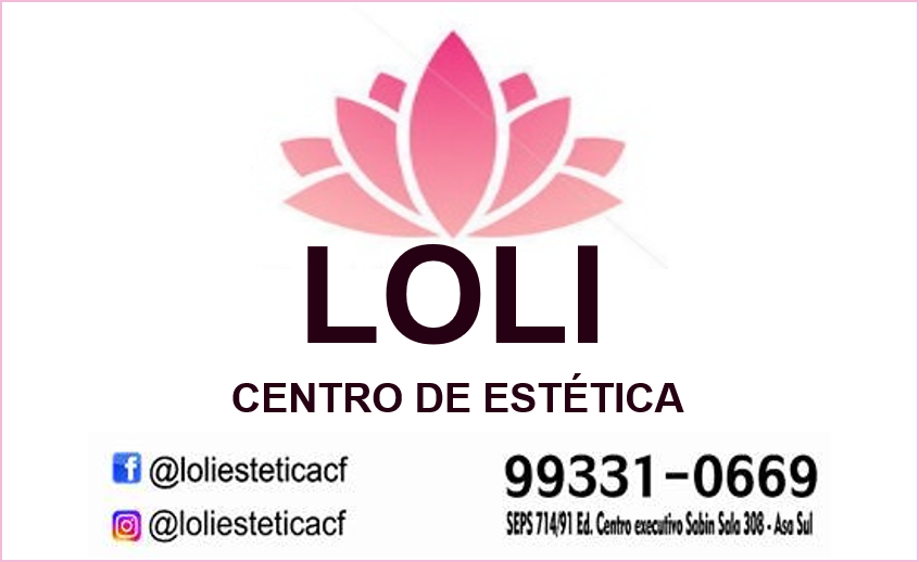 > Nome da empresa: LOLI CENTRO DE ESTETICA > Endereço: SEPS 714/914 BLOCO D > Telefones: (61) 99331-0669 > E-mail: ramos.anakrs@gmail.com > Facebook: /loliesteticacf > Instagram: @loliesteticacf > Desconto: DESCONTO DE 10% | ![]() |