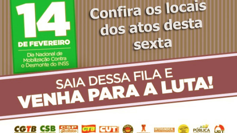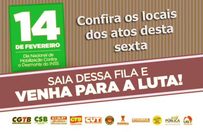 Em vários estados brasileiros, a CUT, centrais sindicais e movimentos sociais já se preparam para as ações de protesto contra o sucateamento do Instituto Nacional do Seguro Social (INSS), que serão realizadas em todo o país, nesta sexta-feira (14). Confira abaixo a lista dos locais onde tem ato marcado.