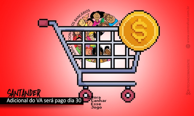 O banco Santander respondeu à solicitação do movimento sindical e vai adiantar para o dia 30 de setembro o pagamento do adicional de R$ 1.000 de vale alimentação (VA), conquistado na Campanha Nacional dos Bancários deste ano e que poderia ser creditado até o final de outubro. No mesmo dia, o banco pagará a primeira parcela da Participação nos Lucros e Resultados (PLR), como noticiado anteriormente, e as remunerações variáveis do primeiro semestre, além dos salários já reajustados em 8%.