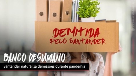 “O banco mente inclusive para seus acionistas e para a sociedade, pois em seu balanço trimestral está escrito que não demitiria durante a pandemia. Ou seja, no documento oficial que é divulgado para o mundo e para os acionistas, o Santander Brasil passa a imagem de empresa responsável socialmente, coisa que na realidade não é”, disse Rosani. Em seu relatório de Demonstrações Financeiras do 1º trimestre de 2020, o Santander afirmou que “devido ao contexto atual do Covid-19, o Santander firmou o compromisso de não demitir funcionários durante a crise.”