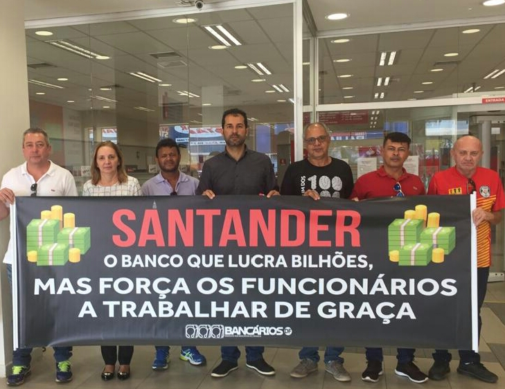 Para os representantes dos trabalhadores, é um absurdo que o banco espanhol queira abrir 29 agências em todo o país com trabalho voluntário dos bancários, sem proteção das leis trabalhistas. Enquanto cobra voluntariado dos trabalhadores, o Santander obteve lucro de R$ 3,485 bilhões no 1º trimestre de 2019, um crescimento de 21,9% em relação ao mesmo período em 2018. O que faturou no Brasil representa 29% do rendimento global, que foi de € 1,840 bilhões.