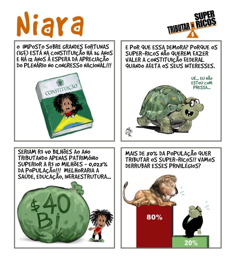 O Imposto sobre Grandes Fortunas (IGF) está previsto na Constituição Federal de 1988, mas nunca foi devidamente regulamentado. A campanha propõe cobrar alíquotas anuais modestas: de 0,5%, para patrimônios R$ 10 milhões e R$ 40 milhões; 1%, entre R$ 40 milhões e R$ 80 milhões; e 1,5% acima de R$ 80 milhões.