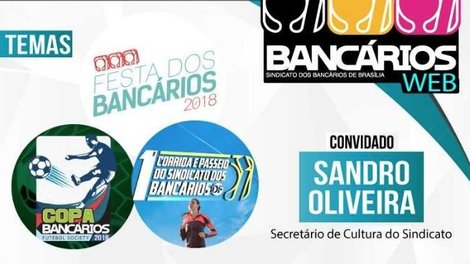 O TV Bancários na TV Comunitária desta sexta (14) exibe uma entrevista com o secretário de Cultura Sandro Oliveira, que fala sobre as iniciativas do Sindicato programadas para os próximos meses.