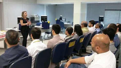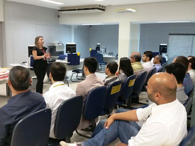 A diretora do Sindicato Marianna Coelho em reunião com bancários do BB