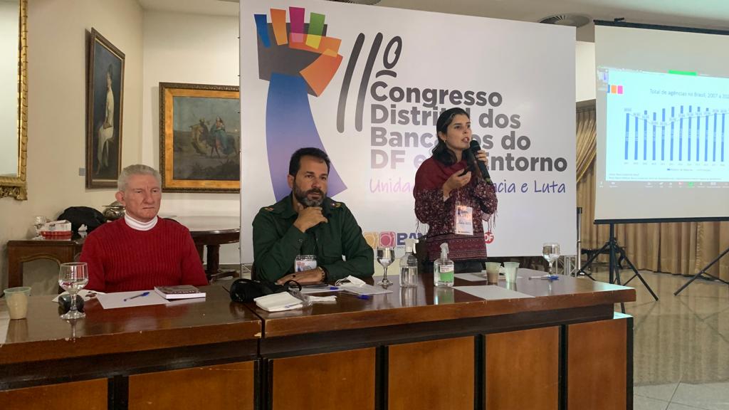 No segundo dia do 11º Congresso Distrital dos Bancários do Distrito Federal e Entorno, realizado neste sábado (21), os trabalhadores e trabalhadoras participaram de importantes debates. A segunda mesa, coordenada pelo presidente do Sindicato, Kleytton Morais, trouxe um diagnóstico sobre pautas essenciais e urgentes para a categoria.