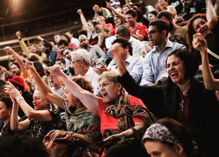Foi de arrepiar. O Teatro Plínio Marcos da Fundação Nacional de Artes – Funarte, que comporta 600 pessoas, estava lotado na noite dessa segunda-feira (24/5), quando foi realizada a plenária distrital da Frente Brasil Popular. Com gritos de “Fora Temer”, “Golpistas, fascistas não passarão” e “Não vai ter golpe, já tem luta”, sindicalistas, integrantes de movimentos sociais, artistas, estudantes e todos os que trabalham em defesa da democracia se mostraram decididos a derrubar o governo interino golpista de Michel Temer. Para isso, a agenda de luta aprovada traz manifestações, acampamentos e várias atividades que serão desenvolvidas nos próximos dias.