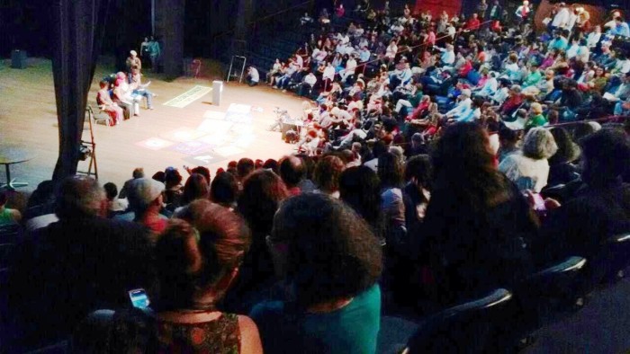 Foi de arrepiar. O Teatro Plínio Marcos da Fundação Nacional de Artes – Funarte, que comporta 600 pessoas, estava lotado na noite dessa segunda-feira (24/5), quando foi realizada a plenária distrital da Frente Brasil Popular. Com gritos de “Fora Temer”, “Golpistas, fascistas não passarão” e “Não vai ter golpe, já tem luta”, sindicalistas, integrantes de movimentos sociais, artistas, estudantes e todos os que trabalham em defesa da democracia se mostraram decididos a derrubar o governo interino golpista de Michel Temer. Para isso, a agenda de luta aprovada traz manifestações, acampamentos e várias atividades que serão desenvolvidas nos próximos dias.