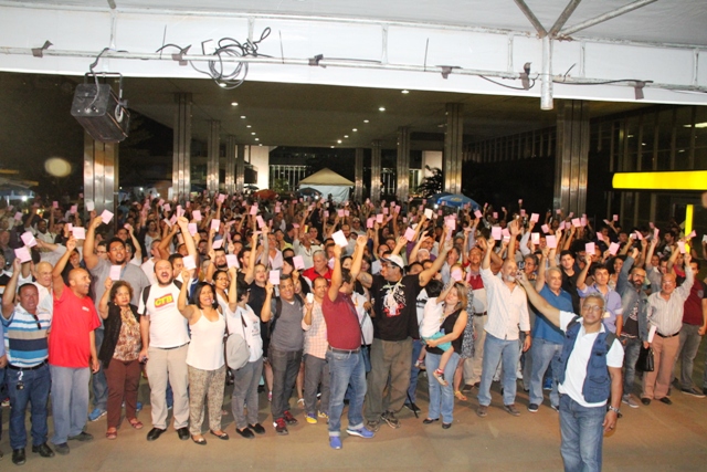 Por unanimidade, os bancários de Brasília, de bancos públicos e privados, ratificaram na noite desta segunda-feira (5), em assembleia na Praça do Cebolão, no Setor Bancário Sul, a decisão tomada na última quinta-feira (1º) e, sem nova proposta da Fenaban, cruzam os braços por tempo indeterminado a partir da 0h desta terça-feira (6).