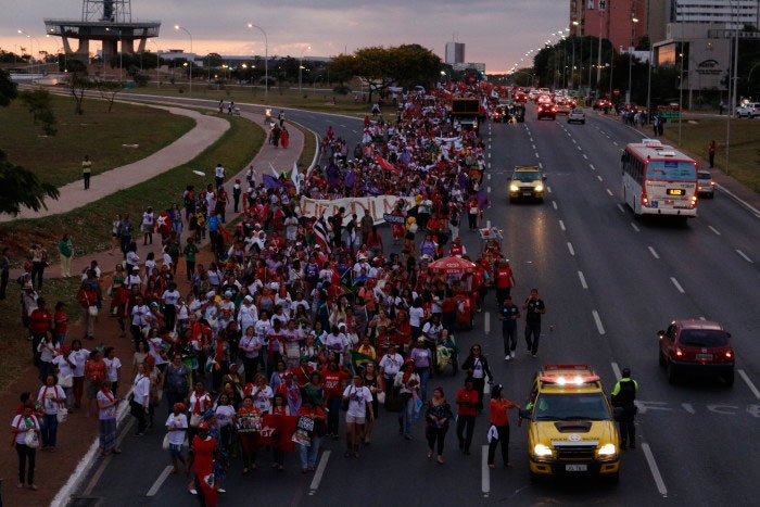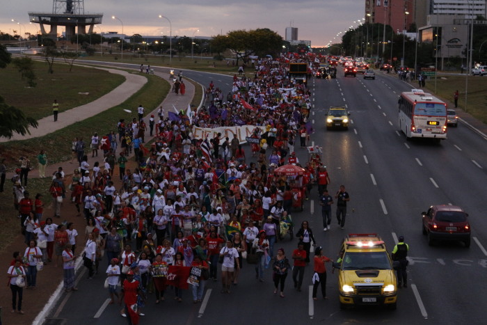 Promovido pela CUT e pelas Frentes Brasil Popular e Povo Sem Medo, o ato político teve início ainda no Acampamento Popular, que reúne a militância de outros estados no estacionamento do estádio Mané Garrincha. Ao longo do percurso, as lideranças sociais denunciaram o caráter golpista de um processo de impeachment que tem como pano de fundo a flexibilização dos direitos trabalhistas, a entrega dos recursos naturais do país para o capital privado, a criminalização dos movimentos sociais e a exacerbação das desigualdades.