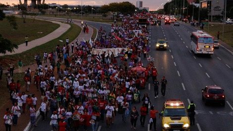 Promovido pela CUT e pelas Frentes Brasil Popular e Povo Sem Medo, o ato político teve início ainda no Acampamento Popular, que reúne a militância de outros estados no estacionamento do estádio Mané Garrincha. Ao longo do percurso, as lideranças sociais denunciaram o caráter golpista de um processo de impeachment que tem como pano de fundo a flexibilização dos direitos trabalhistas, a entrega dos recursos naturais do país para o capital privado, a criminalização dos movimentos sociais e a exacerbação das desigualdades.