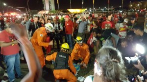 Milhares de manifestantes se concentraram em vigília diante do Congresso, onde acompanharam a votação dos senadores. A Polícia Militar, injustificada e indiscriminadamente, atacou os manifestantes com gás de pimenta e bombas de efeito moral, o que foi classificado pelos dirigentes sindicais como uma tentativa de intimidar e dispersar os que lutam pacificamente pela democracia e pelos direitos dos trabalhadores. “A Polícia Militar mostrou de que lado está mais uma vez e não é do lado do povo, do trabalhador. Mas vamos lutar, lutar e lutar contra tudo isso, contra o golpe”, disse Marcos Junio, secretário de Comunicação da CUT Brasília.