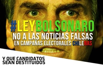 São Paulo – O senador chileno Alejandro Navarro anunciou nesta terça-feira (23) que vai propor uma nova lei para destituir candidatos em eleições que divulguem fake news – notícias falsas – contra adversários. O projeto de reforma constitucional foi batizado de "Lei Bolsonaro", devido à "forma questionável" de fazer política do candidato da extrema-direita a Presidente da República nas eleições 2018 no Brasil.