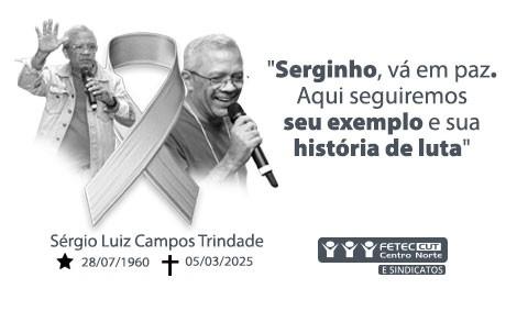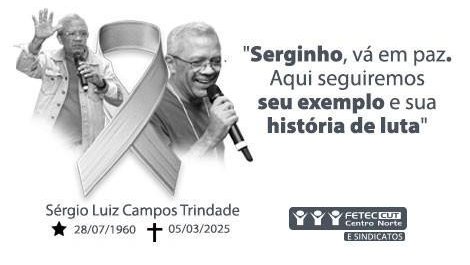 A Federação dos Trabalhadores em Empresas de Crédito do Centro-Norte (Fetec-CUT/CN) comunica com profundo pesar o falecimento nesta quarta-feira de cinzas 5 de março do nosso Diretor de Imprensa, Sérgio Trindade, o Serginho, bancário do Banco da Amazônia e atual secretário-geral do Sindicato do Pará.