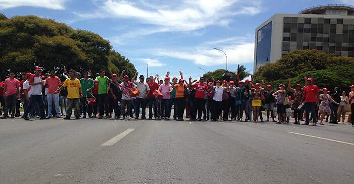 Somaram-se ao ato desta sexta-feira (16) os trabalhadores terceirizados do Distrito Federal, que aprovaram greve em assembleia realizada nessa quinta-feira. Como atividade do movimento paredista, os trabalhadores terceirizados da área de serviços gerais do Tribunal de Justiça do DF e Territórios, ocuparam o Eixo Monumental, sentido Rodoviária do Plano Piloto, e pediram a apresentação de uma proposta que contemple a categoria.