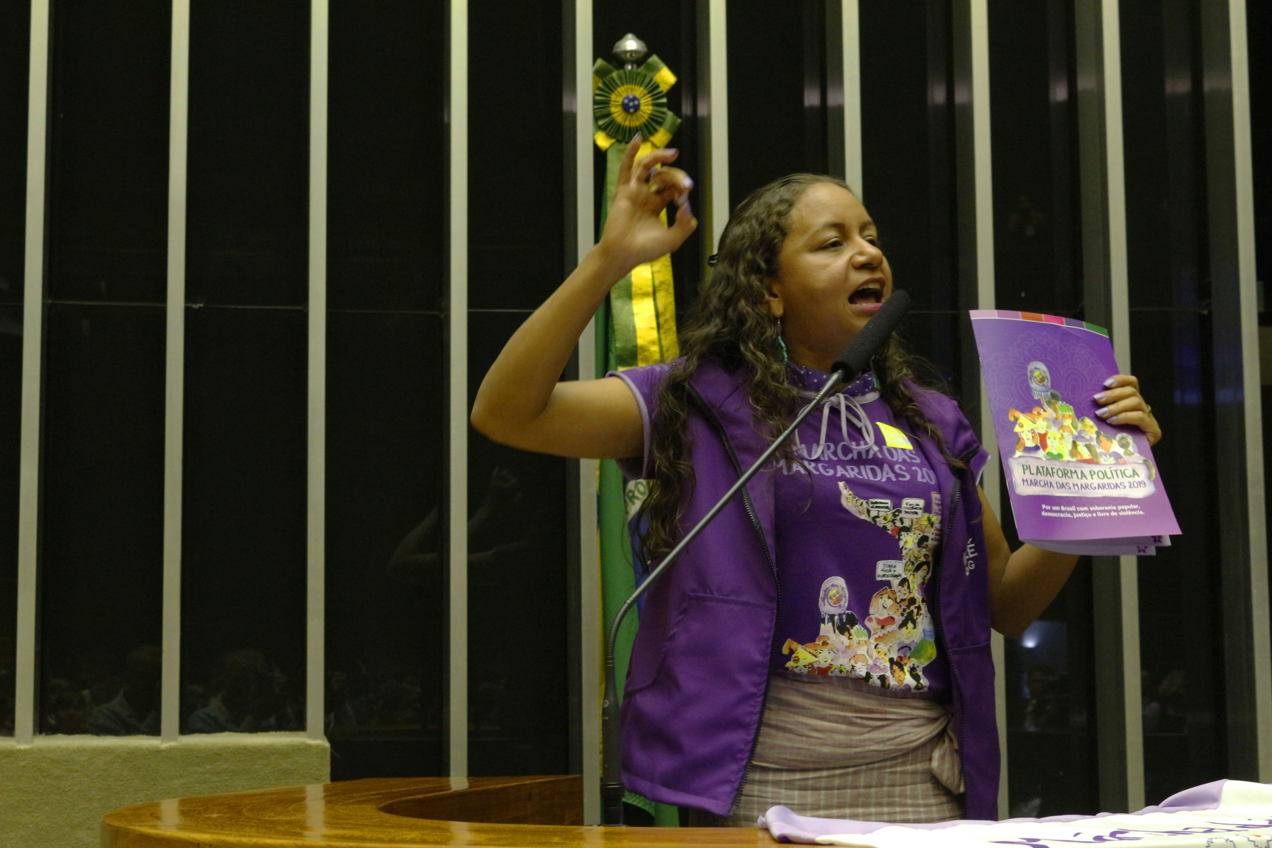 “Está lindo ver esse plenário cheio do povo. Cheio de mulheres trabalhadoras. Esse Plenário, que tem ficado tão afastado do povo brasileiro em um momento em que estamos discutindo temas tão importantes para a sociedade. Hoje, a Casa do Povo se alegra em receber a Marcha das Margaridas”, destacou a deputada federal e presidenta do Partido dos Trabalhadores (PT), Gleisi Hoffmann.