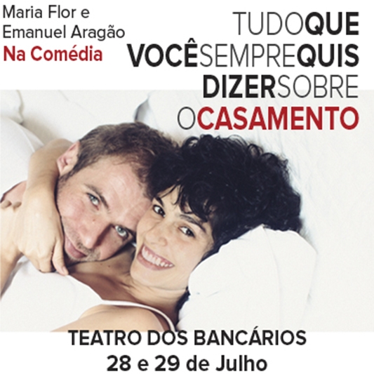 O Teatro dos Bancários recebe o espetáculo Tudo que você sempre quis dizer sobre o casamento neste fim de semana e o Sindicato vai sortear quatro pares de ingressos para os sindicalizados. Os felizardos vão assistir à comédia romântica estrelada por Maria Flor e Emanuel Aragão, onde o casal da vida real reconta histórias desde o primeiro encontro até o casamento.